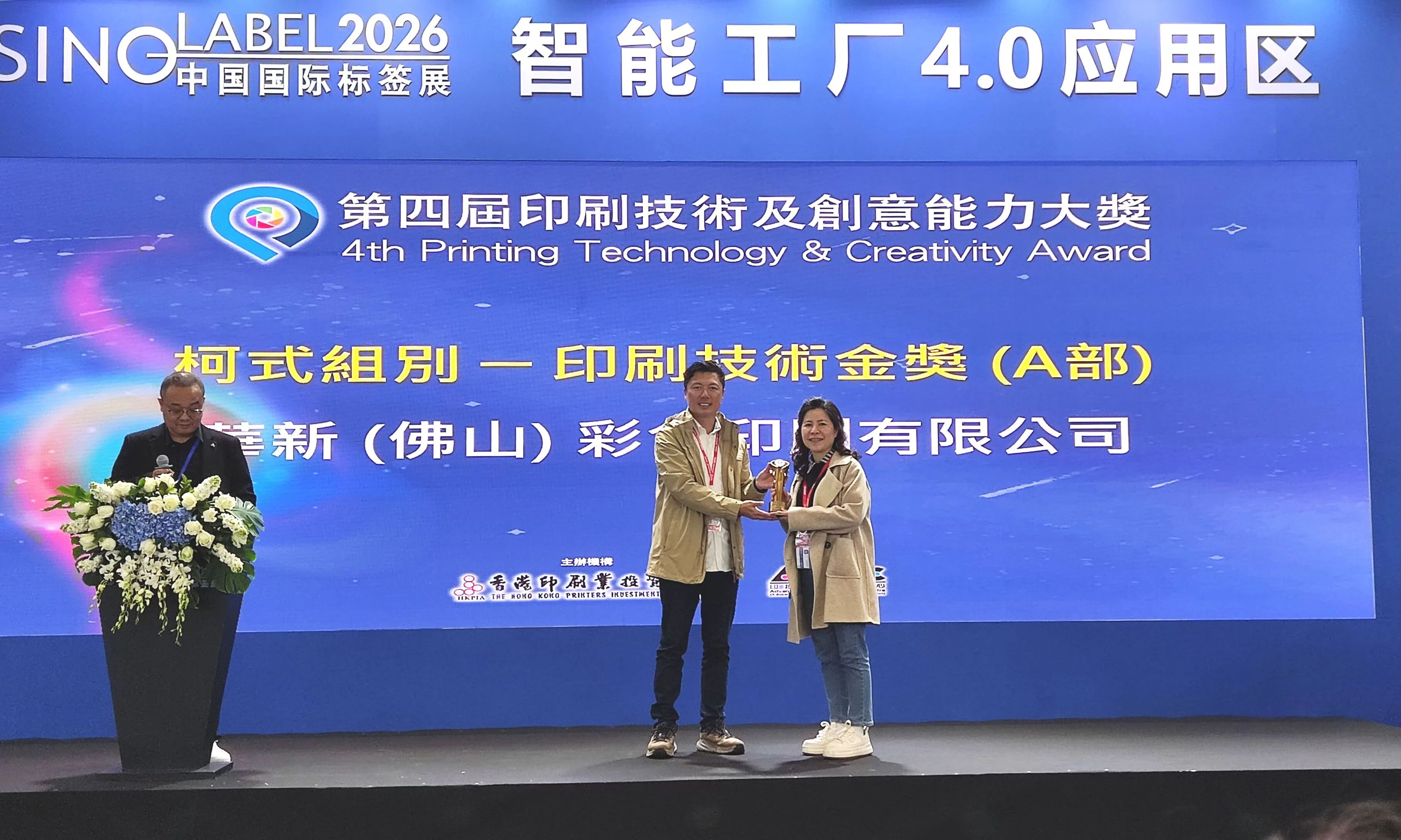 华新彩印代表(右一)上台领奖